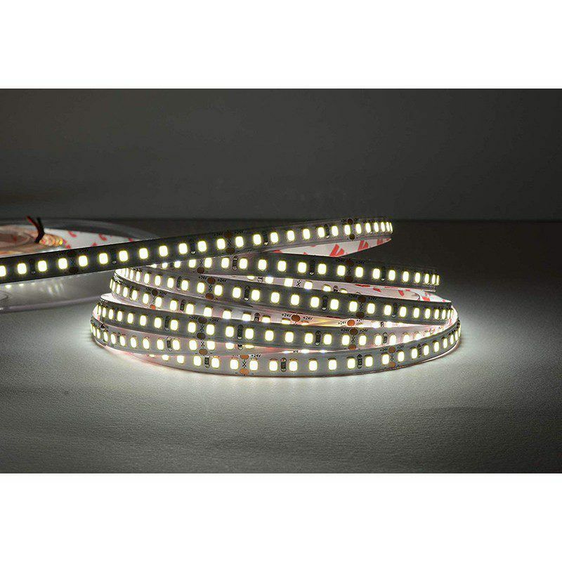 DESCRIZIONEStriscia Led 2835 da 5 metri, montata su biadesivo della 3M.160Led/mt, (800 Led totali) questa strip Led e' tagliabile a ogni 8 Led.Il collegamento di piu' strisce Led deve essere effettuato in parallelo.Per l' installazione e' necessario l' uso dei profili in alluminio per la dissipazione. Alta Efficienza Luminosa da 150lm/W Rivestita con silicone puro, Impermeabile e non ingiallisce . Tensione di Alimentazione DC 24V (Alimentatore non incluso) Striscia Led Dimmerabile e Tagliabile a ogni 8 Led (50mm) Potenza Nominale 60W a Bobina / Potenza di Consumo 11.5 W/mt Lumen Nominale 9000 Lm a Bobina / Lumen Effettivi 1710 Lm /mtSCHEDA TECNICA:Larghezza PCB 8mmAltezza PCB+SMD 3mmLunghezza Bobina 5000mmAlimentazione DC 24VPotenza Nominale 60W /BobinaPotenza Effettiva 12W /mtLumen Nominale 9000lm /BobinaLumen Effettivi 1710lm /mtKelvin: 3000K / 4000K /6000K (*Vedi note)Resa Cromatica (CRI) 80+Tipo Led 2835 x 800pzTagliabile Ogni 8 Led / 50mmImpermeabilita' IP65'Dimmerabile