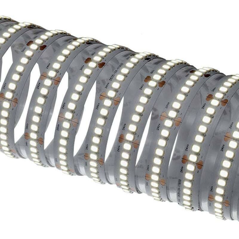 Striscia Strip Led Nobile con le seguenti caratteristiche: Potenza per metro: 25W Potenza: 125W Tensione di esercizio: 24Vdc Temperatura di colore: 3000K (luce calda) Flusso luminoso nominale: 4760 lumen Flusso luminoso reale: 3090 lumen Indice di resa cromatica CRI: >90 Fascio di luce: 120° gradi Grado di protezione IP20 Classe energetica: F Bobina da 5 metri. Caratteristiche: Per uso interno Tipo di installazione: Illuminazione in cornice, insegne luminose, Illuminazione d'accento, illuminazione di facciata, profili in alluminio Profondità: 10 mm Altezza 1,2 mm Numero di tagli: 170 Distribuzione della luce: Un lato Tipo di curvatura: Verticale Raggio di curvatura massimo: 60 mm Tipologia: Striscia led Tensione: 24V Colorazione: Calda Grado di protezione: IP20 Lunghezza: 5 Metri Classe Energetica: F Temperature di Colore: 3000 Kelvin