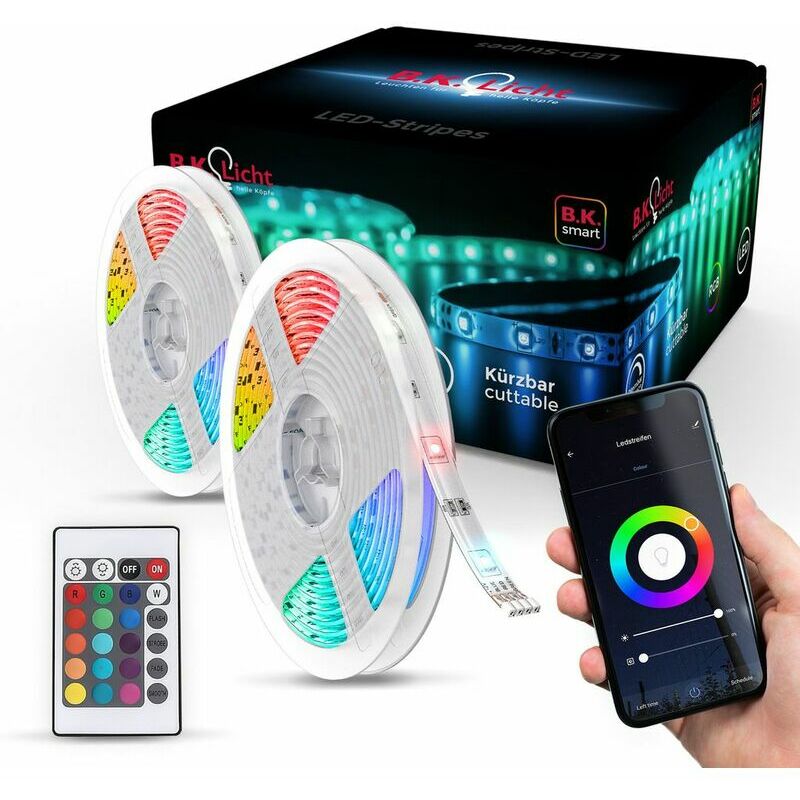 Striscia LED WiFi da 6 m Striscia luminosa Smart Home APP Striscia dimmerabile RGB 230V SMD Strisce LED WiFi Smart Home controllo smartphone tramite Tuya-App Crea atmosfera nel tuo casa con questa striscia LED bianca connessa, lunga 6 metri e dotata di 90 diodi LED. La scelta del colore, le diverse modalità di cambio colore e l'intensità della luce sono controllate dal telecomando in dotazione o semplicemente dal tuo smartphone tramite l'app gratuita TUYA. CONTROLLO TRAMITE APP - scarica l'app gratuita Tuya Smart da AppStore o Play Store e crea la tua esperienza di illuminazione. L'app ti consente di controllare tutte le luci compatibili tramite il tuo smartphone, nonché una funzione timer e programmatore e la registrazione di scenari personalizzati. LUCE INTELLIGENTE - decora e illumina i tuoi interni con questa striscia luminosa bianca 6 metri. Dotato di 90 LED, puoi controllare tutte le funzioni con il tuo smartphone utilizzando l'applicazione gratuita "Tuya" o con il telecomando