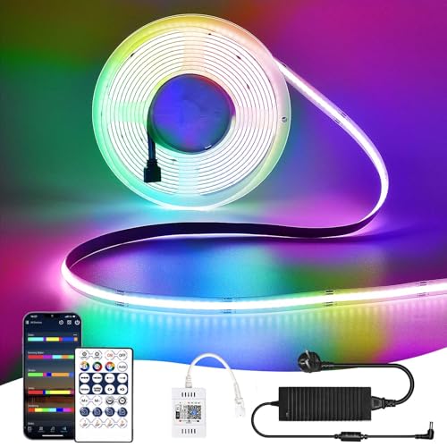 Striscia LED COB WIFI 5M RGBIC con alimentatore,Striscia LED Flessibile 720 LED dimmerabile,Striscia LED effetto multicolore 12V Temporizzazione APP/Telecomando,Compatibile con Alexa/Google Home