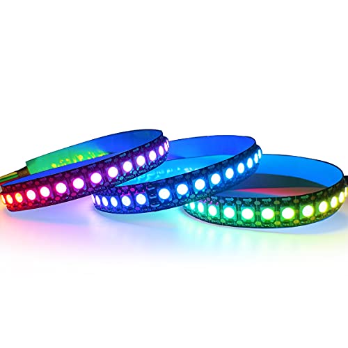 Striscia LED WS2812B 5V, Tesfish RGB Strisce LED Pixel 1M 144LEDs/M IP30 Flessibile Nero PCB Pieno di Colori Nastri LED Intelligente per Decorazione Pubblicitaria Progetti DIY
