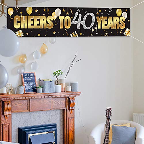 40o Compleanno: felice striscione per il 40o compleanno con sfondo nero e parole d'oro: "cheers to 40 years", colori vivaci e modelli vivaci per attirare l'attenzione dei vostri ospiti