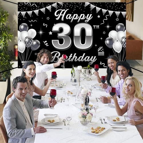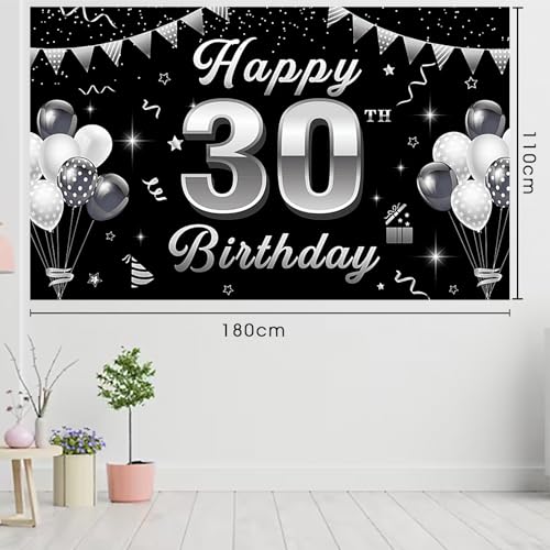 Striscione per 18 compleanno nero argento decorazione compleanno 18 ragazzi ragazze striscioni 18 compleanno extra grande decorazione per 18 anniversario sfondo banner cartello poster per 18