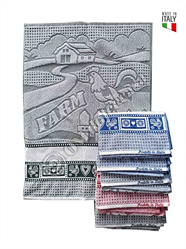 Strofinacci ASCIUGHINI CANOVACCI Tela Aida Modello Farm Fattoria Pacco da 6 Pezzi con Tela Aida per RICAMARE Prodotto Italiano 100% Cotone Misura