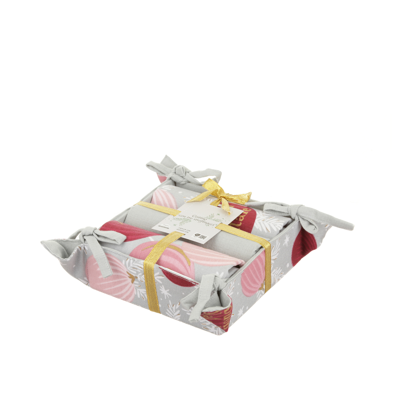 Natale è la festa per eccellenza che raduna famiglie e amici intorno a gustose tavolate di cibo. In quest'occasione servono anche pratici strofinacci per asciugare piatti e pentole dopo il lavaggio a mano o in lavastoviglie. Perchè non scegliere questo bellissimo set con decori a tema? Si abbina agli altri accessori tessile della linea come il portapane, la tovaglia, i tovaglioli e i runner... un bel set tutto coordinato per la tua cucina di Natale. I 3 strofinacci sono confezionati in un comodo cestino che potrai riciclare e utilizzare più volte come ti è più comodo! Tutto il set è lavabile comodamente in lavatrice perchè realizzato in 100% cotone. Misure cestino: 18x18 cm. Misure strofinacci: 40x60 cm.