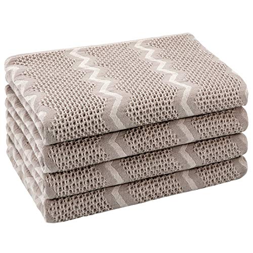 Set di 4 strofinacci in cotone da cucina a nido d'ape super assorbenti, con occhielli per appenderli, da 34 cm x 76 cm, in confezione da 4 pezzi, di colore marrone