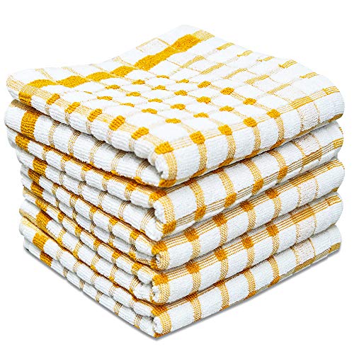 Set di 5 strofinacci in spugna 100% cotone, colore giallo, bianco, grande, super assorbente, per la pulizia, 60 x 40 cm (giallo bianco)