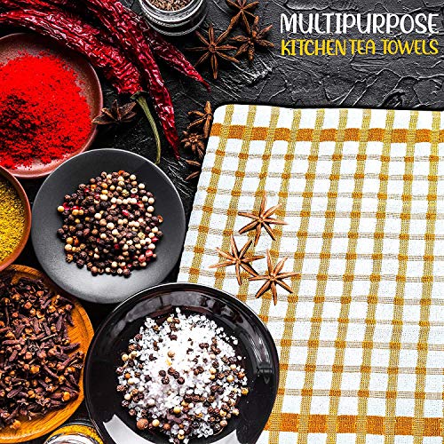 Strofinacci 100% in spugna di cotone egiziano, a righe, di grado professionale, essenziali, per cucina, ristorante, bar, vetro, senza pelucchi e senza striature, realizzati in 100% cotone e ha un design multicolore a quadri grandi. Ideale per asciugare piatti, bicchieri o qualsiasi altra stoviglie, senza lasciare striature o piccole fibre dietro, non scolorisce colore, orli ben cuciti, senza pelucchi e graffi. Resistenti, questi strofinacci resistono a qualsiasi cosa la vostra cucina occupata possa gettare contro di loro.