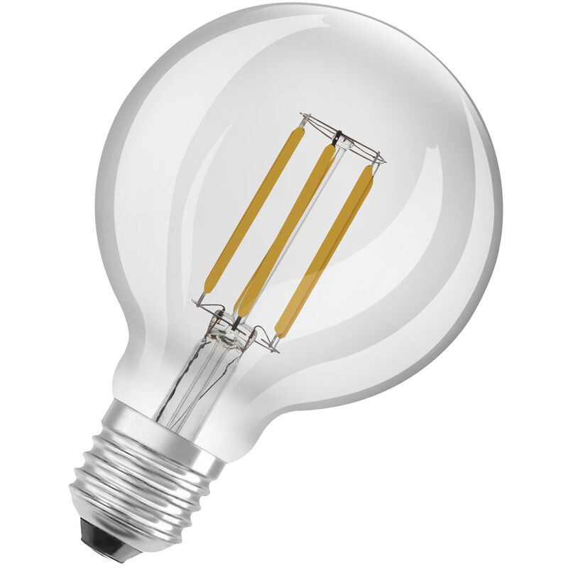 LED LAMPEN, klassische Ballform, ENERGIEEFFIZIENTKLASSE A. Produkteigenschaften: LED-Lampen für Netzspannung. Ausstrahlungswinkel: bis zu 300°. Sehr lange mittlere Lebensdauer: 50.000 h . Sehr hohe Schaltfestigkeit: bis zu 100.000. Lichtausbeute: bis zu 210 lm/W. Produktvorteile: Lampen mit innovativer LED-Filament-Technologie. Design, Abmessungen, Lichtstrom vergleichbar mit einer Halogenlampe. Sehr geringer Energieverbrauch. Sofort 100 % Licht, keine Aufwärmzeit. Geringes flackern. Anwendungsgebiete: Ideal für dekorative Einbauten. Anwendungen im Haushalt. Allgemeinbeleuchtung. Einsatz im Außenbereich nur in geeigneten Außenleuchten.