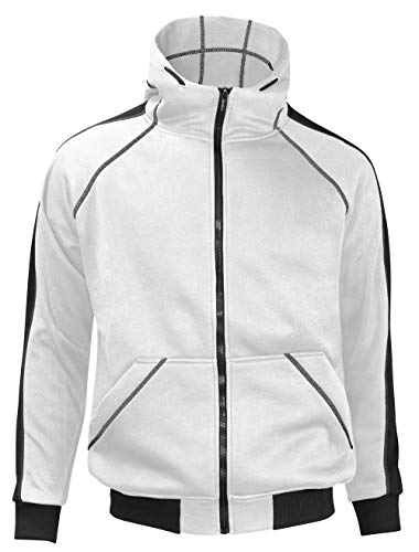 StrongAnt Felpa con Cappuccio Apertura Zip da Uomo. Felpa con Cappuccio in Pile Pesante. Maglione da Lavoro Invernale con Zip da Uomo. Abbigliamento da Lavoro - XXXL Bianco/Nero, Cucitura Nera