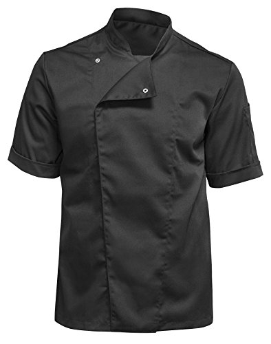 StrongAnt Giacca cottone da Cuoco da Uomo con Bottoni a Pressione nascosti YKK Giacca da Panettiere Maniche Corte - Slim Style, Slimfit - Nero, M