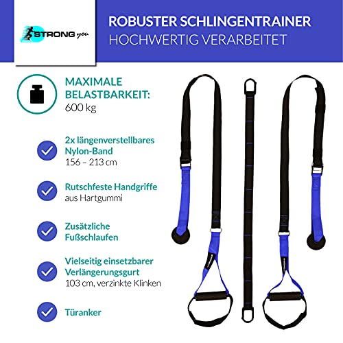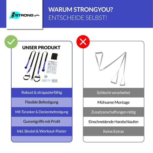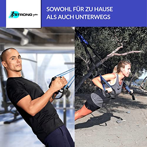 StrongYou - Set di allenamento a sospensione con ancoraggio per porta e fissaggio a soffitto, per allenamento efficace a casa e in viaggio