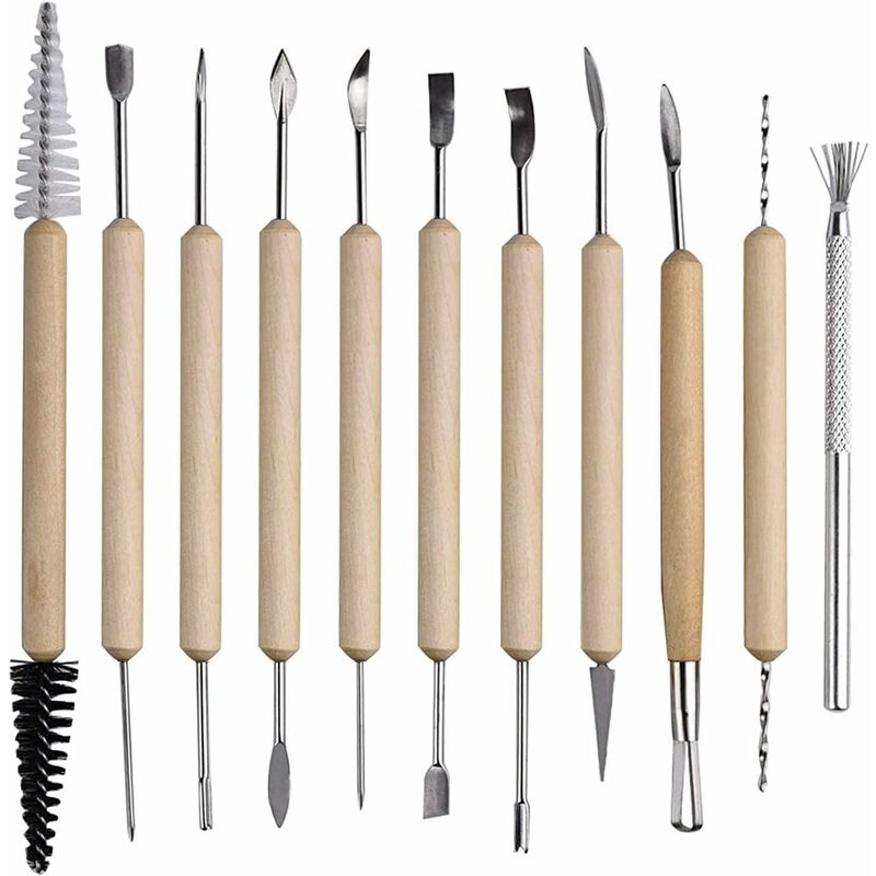 adatto a principianti ed esperti per creare e costruire tutte le forme. Qualità premium: gli strumenti da intaglio a doppia estremità sono realizzati in legno e metallo. Il manico è in legno, comodo e resistente. Leggero, liscio e comodo da impugnare. Ampio utilizzo: questo set di strumenti per scolpire l'argilla è molto adatto per gli appassionati di fai-da-te per intagliare la cera, argilla, intaglio della ceramica, ceramica, intaglio della cera. Perfetto per principianti, professionisti e artisti. 11 strumenti da intaglio di diverse dimensioni e forme. Quindi puoi