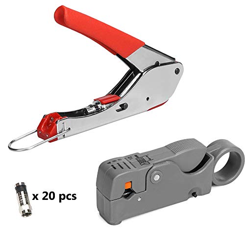 Kit di Strumenti di Compressione per Cavi Coassiali, 20 Conector Tipo F, Pinza Crimpatrice per Cavi Coassiali, Spellafili Rotante per cavo coassiale RG58 RG59 RG6 RG-62