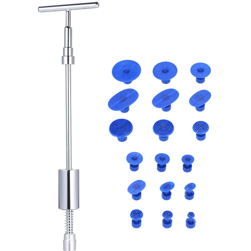 Come strumento per estrarre la linguetta della colla leggera, può essere utilizzato per riparare ammaccature da pressione e ammaccature non incisive o increspate. Caratteristiche: Di lunga durata e può essere riutilizzato per diverse volte. Ventosa blu 18pcs, diverse dimensioni per l'adsorbimento. Facile da usare e non danneggerà la superficie dell'auto. Linguetta professionale per garde ammaccatura per auto. Facile da controllare, tutti possono rimuovere l'ammaccatura da soli. specifiche tecniche: Tipo di oggetto: Strumento per la rimozione dei denti Stile di selezione: 2 tipi di tipi Peso del pacchetto: Kit: 1200g / 2.64pounds Strumenti di adsorbimento da 18 pezzi: 35 g / 1,23 once Formato del pacchetto: 500 * 120 * 120mm / 19,6 * 4,72 * 4,72 pollici Lista dei pacchetti: 1 * Strumento di rimozione dell'ammaccatura 18pcs * Strumenti di adsorbimento