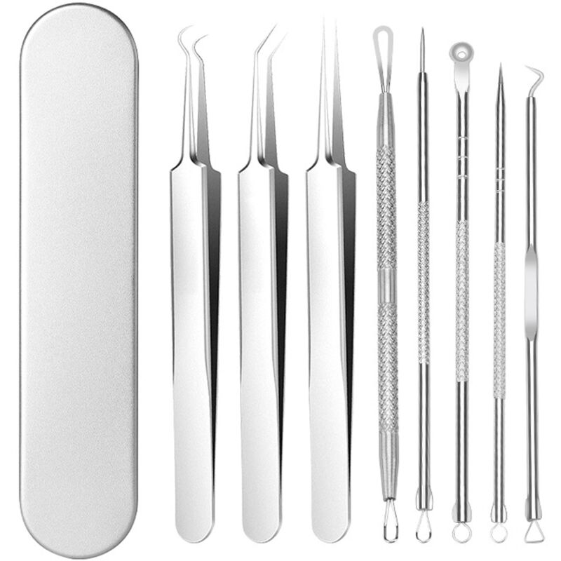KIT DI STRUMENTI PER POPPER UTILE 8 IN 1 - Questo set di strumenti per la rimozione dei punti neri include 8 pezzi di vari strumenti per la rimozione dei punti neri: colli di bottiglia, aghi e pinzette per il trattamento di diversi tipi di imperfezioni del viso, punti neri, acne, comedone, brufolo e brufolo facilmente. Istruzioni fornite per farti conoscere l'uso di ogni strumento in modo chiaro. 【ACCIAIO INOSSIDABILE DI GRADO CHIRURGICO】 Tutti gli strumenti per la rimozione dei punti neri che sono una sterilizzazione sicura per prevenire la corrosione, non causano problemi di sensibilità e riducono al minimo il rischio di infezione . Questo kit di strumenti per l'estrazione di brufoli può funzionare su tutti i tipi di pelle. 【MANIGLIA ERGONOMICA】 Con il design dell'impugnatura antiscivolo, questo kit di strumenti per l'estrazione di punti neri può aiutarti a controllare meglio la pressione durante l'uso, assicurandoti che ogni passo possa essere fatto con un controllo eccezionale ed
