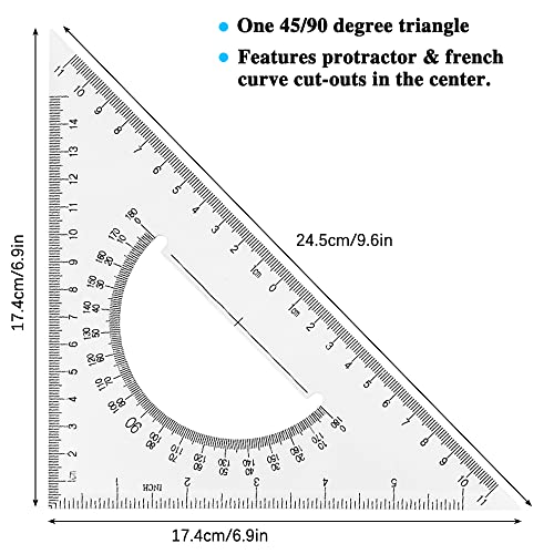 La confezione include: triangolo da 22 cm, triangolo da 30/60 cm, righello dritto da 15 cm, righello dritto da 15 cm. Se non sei soddisfatto del prodotto o c'è qualche problema con il prodotto, ti preghiamo di contattarci e lo risolveremo per te.