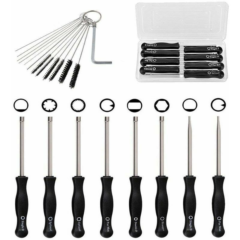 Descrizione del prodotto: 【UN SET DI UTENSILI MUST-HAVE】- 8 diversi strumenti per la messa a punto del carburatore RENDONO PERFETTAMENTE I TUOI CARBURATORI, tra cui Pac Man, Small Head Pac Man, Single D, Small Head Single D, Double D, Hexagon, 7 denti scanalati, 21 denti scanalati, utilizzati per la maggior parte dei motori a carburatore a 2 tempi. Indispensabile per chi mantiene attrezzature personali e affari per amici e familiari 【CONVENIENTE E DUREVOLE DA USARE】- L'impugnatura ergonomica del kit di regolazione del carburatore offre praticità e comfort per il lavoro. Costruito con maniglie quadrate che facilitano la lettura di incrementi di 1/4 di giro sulle impostazioni di fusione. Testa montata robusta, precisa e stabile 【KIT DI PULIZIA E CUSTODIA PER IL TRASPORTO】 - Il kit di pulizia è realizzato in nylon ad alta densità, buona elasticità, nessun spargimento, contiene 6 aghi 6 spazzole con manico ad anello in metallo. Avvolgimento in filo di acciaio inossidabile, antiruggine