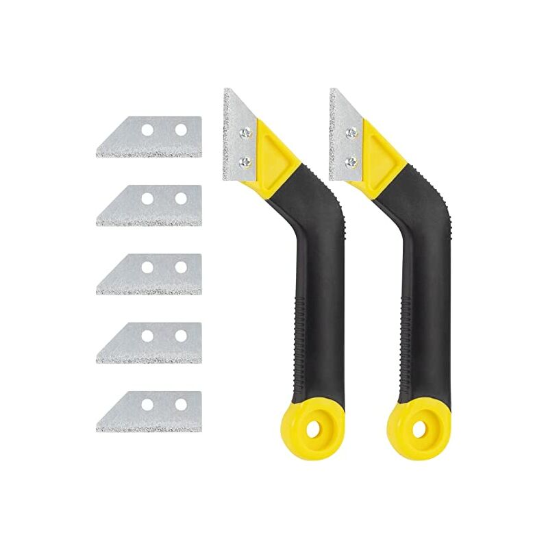 Impugnatura confortevole: siamo orgogliosi del design ergonomico e curvo unico e dell'equilibrio per una presa e un funzionamento confortevoli. La forma angolata dell'impugnatura ti aiuta a entrare in piccoli spazi vuoti, facilitando la rimozione di giunture spesse. Design di sicurezza antiscivolo: area di controllo in gomma antiscivolo sull'impugnatura Lascia che i contorni del dito proteggano la tua mano e distribuire la forza in modo uniforme aumentano la sicurezza della presa. Riduci il rischio di scivolare e graffiare le piastrelle. Efficiente strumento per graffiare: con questo pratico prodotto per la rimozione della malta puoi concentrarti sulla rimozione della vecchia malta senza incasinarla, livellare e secondo necessità. Lama per superficie granulosa: la lama per superficie granulosa fornisce un vero tagliente per raschiare la malta indurita, particolarmente utile in aree ristrette dove gli strumenti meccanici sono scomodi da usare. Bundle: questo pacchetto include