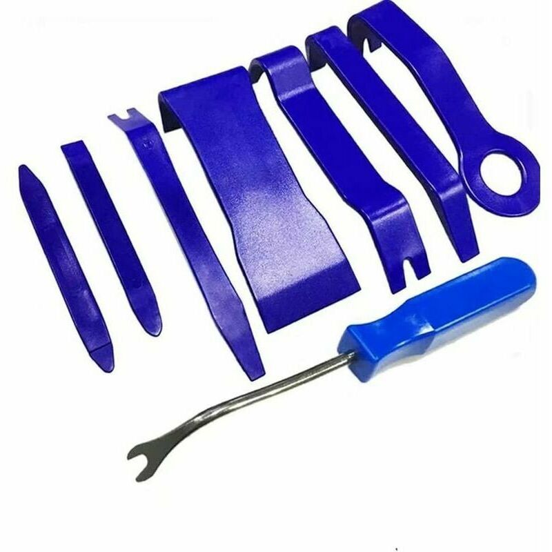 MULTI UTILIZZO: 8 diversi tipi di utensili da taglio, ottimi per tagliare audio/radio per auto, strumenti per pannelli, finestre, lavori interni o anche per rimuovere pneumatici di biciclette. Varie dimensioni tra cui scegliere: con 8 strumenti per la rimozione di lastre di plastica, opzioni sufficienti per lavorare su più perni dell'auto all'interno. Uso a lungo termine: realizzato in plastica super resistente, ha un'eccellente resistenza all'abrasione, alla fatica e può resistere alle alte temperature. Proteggi la tua auto: non preoccuparti di danneggiare la vernice, perché queste clip, a differenza delle clip metalliche che graffiano la superficie, sono fatte per essere delicate sulla superficie. Descrizione del prodotto Dimensioni: kit grande Ora arriva un altro kit di attrezzi indispensabile! Questo strumento di rimozione del pannello e dispositivo di rimozione del dispositivo di fissaggio gratuito è ideale per rimuovere elementi su pannelli in plastica per autoveicoli