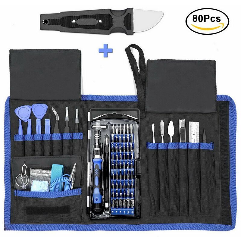 Per tutti i tipi di riparazioni di computer: set di cacciaviti professionali 80 in 1 realizzato con migliaia di dati di riparazione, include la raccolta più completa di 56 punte magnetiche intercambiabili e 24 strumenti di utilità. È adatto per riparare e costruire tutti tipi di computer, oltre a riparare dispositivi elettronici come laptop, computer, MacBook, telefoni cellulari, tablet, controller PS4 e Xbox. Migliora l'efficienza della manutenzione: kit di riparazione computer professionale con 24 utilità. L'albero flessibile si piega liberamente in aree strette e difficili da raggiungere, ideale per il lavoro 3D. I cinturini da polso antistatici proteggono i tuoi dispositivi elettronici e ne effettuano la manutenzione più facile e più sicuro. Uso a lungo termine: 56 punte magnetiche ad alta precisione, realizzate in lega CR-V di alta qualità, con elevata durezza e buona tenacità. L'albero morbido è realizzato in materiale plastico di alta qualità con elevata tenacità e