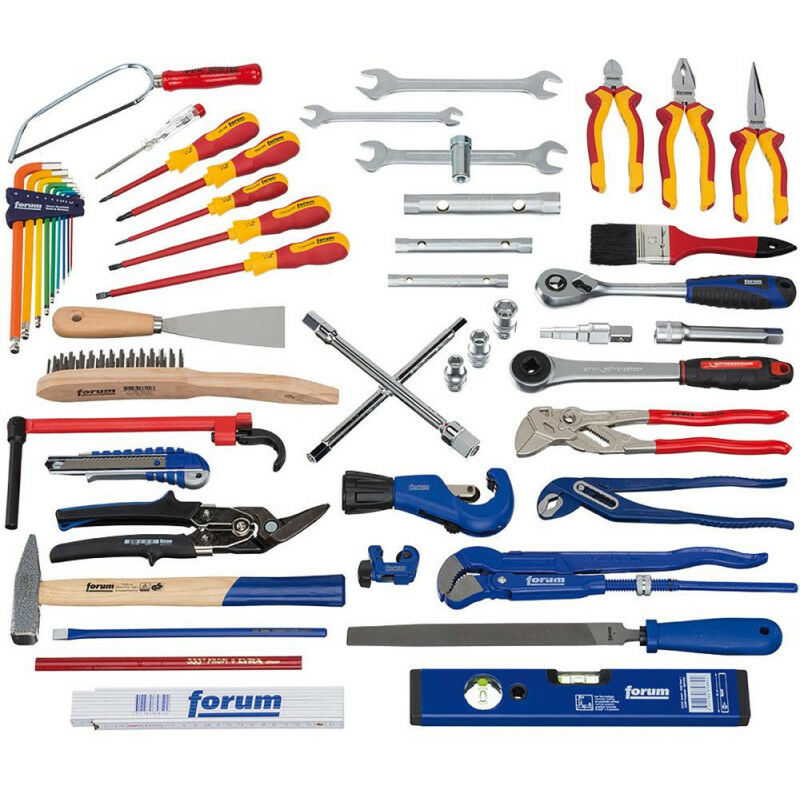 PH 2 1 testeur de tension 1 pince combinée isolée VDE 180 mm 1 pince téléphone isolée VDE 200 mm 1 pince coupante de côté isolée VDE 160 mm 1 cutter 18 mm 1 pince multiprise à crémaillère 240 mm 1 pince multiprise 250 mm 1 clé serre-tubes d'angle 1 1 mini coupe-tubes 3-16 mm 1 coupe- tubi per tubi in cuivre 3-35 mm 1 clé en croix pour plomberie 1 clé de montage 17 x 19 mm 1 clé pour écrous de lavabo 235 mm 1 clé étagée avec cliquet