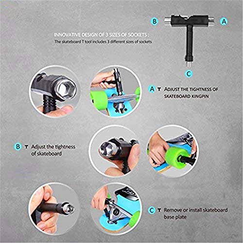 【ALL-IN-ONE-DESIGN】 All-in-One-Multifunktionswerkzeug für alle Ihre Skateboardanforderungen. Mit dem Universalwerkzeug können Sie die Achsmuttern einstellen, Hardware montieren und das Skateboard festziehen oder reparieren.