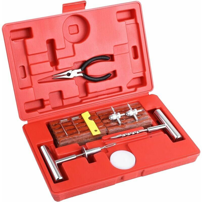 Strumento di foratura multifunzione per kit di riparazione pneumatici per autoveicoli Descrizione del prodotto: il kit di riparazione pneumatici è buono come guasto per danni ingiusti ai pneumatici, con una qualità così elevata. Assistenza stradale: riparazioni facili e veloci di piccoli fori negli pneumatici tubeless. Multifunzionale: adatto per auto, moto, veicoli e altri pneumatici a vuoto. Comodo: facile da usare e durevole da usare. Scatola di Stoccaggio: comodo da riporre e trasportare. Kit di riparazione pneumatici: buona qualità + servizio clienti eccellente. Specifiche: Materiale: plastica + metallo Dimensioni confezione: 31,5x21,5x8 cm Peso: 1,3 kg