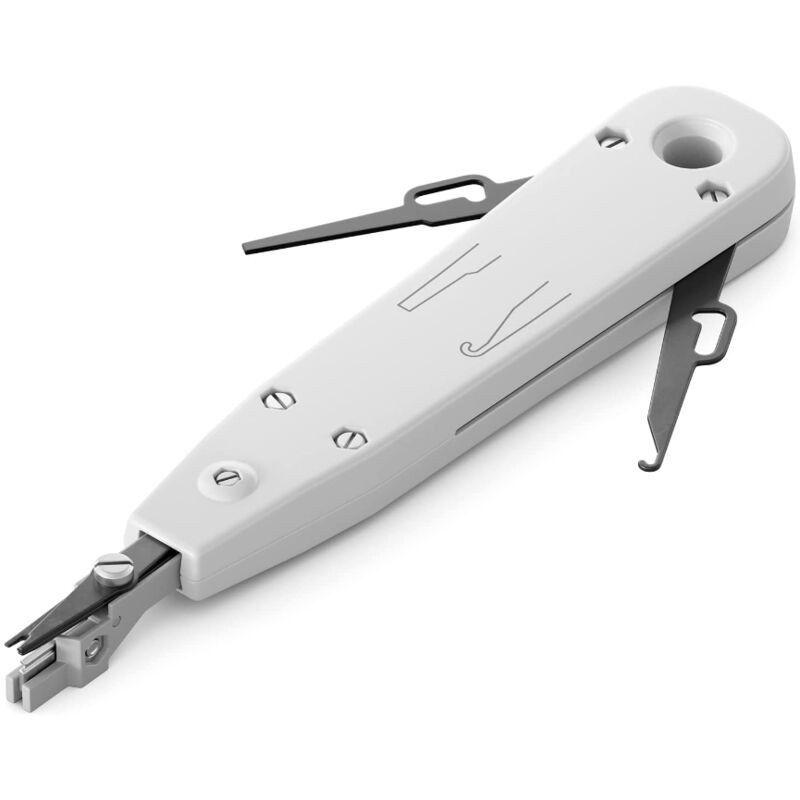Strumento di installazione dello strumento di posa: per rete, CAT, LAN, DSL, ISDN, TAE ecc. Strumento multifunzionale per la posa su strisce, prese e campi Senza saldatura, senza viti e tecnologia di connessione strippless // Per prese di rete, cavi di installazione, patch panel, ecc. Contatti autofilettanti: Facile taglio delle estremità dei cavi a montaggio superficiale Strumento di installazione LSA multifunzionale per reti professionali cablaggio per prese di rete, cavi di rete, patch panel o strisce LSA. Utilizzo Strumento di posa/strumento di installazione LSA multifunzionale Adatto per reti, CAT, LAN, DSL, ISDN, TAE, ecc. Adatto per prese di rete da parete e da incasso, patch panel, ecc. Attrezzo per la posa su strisce, prese e campi Fornitura: 1 * Tagliafili