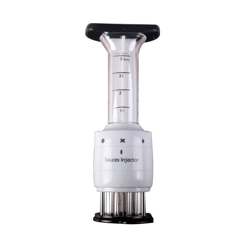 SICURO E SANO - Questi batticarne sono realizzati in acciaio inossidabile 304 per uso alimentare e ABS per uso alimentare che dicono no alle sostanze chimiche nocive. Lo strumento batticarne è progettato ergonomicamente con una comoda impugnatura antiscivolo ed è lavabile in lavastoviglie. Facile da usare e controllare. Cottura efficiente - Il buon concetto e il batticarne intelligente ti consentono di intenerire e condire la carne allo stesso tempo, la lama dell'ago in acciaio inossidabile di alta qualità sul batticarne crea canali nel tuo batticarne tagli di carne preferiti, questi minuscoli canali consentono alla marinata di impiegare solo circa 5 minuti per assorbire completamente la carne e riduce il tempo di cottura fino al 40%. Robusto e durevole: lo stantuffo della siringa per marinata per impieghi gravosi fornisce migliore controllo della pressione. Ruotare lo strato dell'iniettore del potenziatore della salsa, contrassegnare da "I" a "X", bloccare la lama per sicurezza