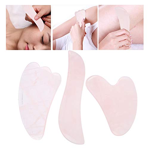 Strumento di massaggio raschiante pietra di quarzo, rullo di quarzo rosa Gua Sha Stone , 3 pezzi per rassodare la pelle per alleviare lo stress