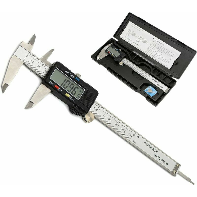 GRANDE SCHERMO LCD E REGALO: calibro digitale in acciaio inossidabile di alta qualità, lo schermo LCD ampio e di facile lettura ti aiuta a ottenere risultati accurati in modo rapido e semplice. Accendi automaticamente il calibro digitale quando sposti la stecca e si spegne automaticamente dopo 5 minuti di non utilizzo Funzionamento a batteria, viene fornito con una batteria preinstallata MISURAZIONE PRECISA: Intervallo di misurazione: 0 - 6''/ 0 - 150mm;