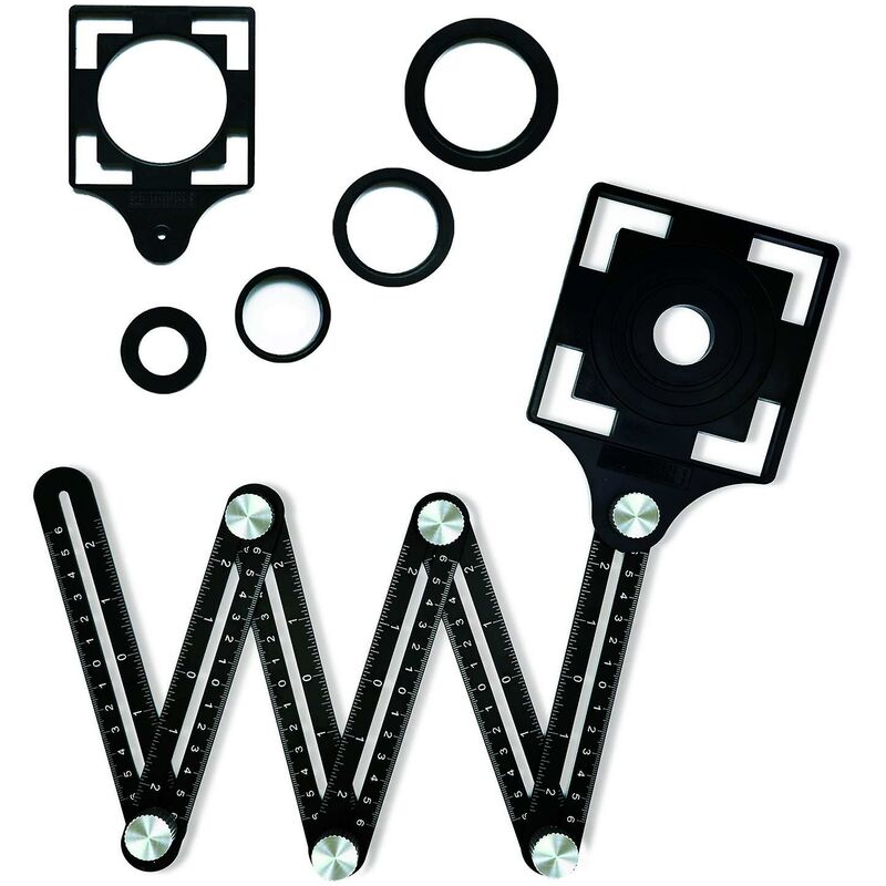 DUREVOLE ED ERGONOMICO: realizzato in lega di alluminio da 5 mm con pomelli e bulloni in metallo resistente, è più resistente e di qualità rispetto a quello in plastica. Dì addio al tuo fragile strumento per modelli. MULTI APPLICAZIONI: Imposta ad angoli di 90 gradi per distanziare pezzi di legno paralleli, forma un quadrato a T per allineare il tuo mattone, persino imposta le tue distanze per la mensola, qualsiasi altro progetto tu possa pensare. FACILE DA USARE: basta posizionare il righello dello strumento modello sull'area di lavoro, far scorrere i righelli nella forma necessaria e serrare le viti. L'innovativo strumento modello a sei lati può essere utilizzato come uno stencil per tagliare il tuo lavoro pezzo. STRUMENTO DI MISURAZIONE DELL'ANGOLO PRECISO: questo strumento per sagoma angolare in lega di alluminio a sei lati è segni incisi al laser (pollici u0026 centimetri) perfetti per misurazioni angolari precise e accurate. Con 6 bracci regolabili, puoi può creare uno stencil