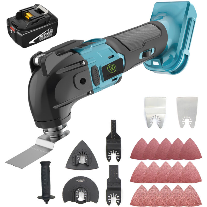 Il pascolo includeva: 1x corpo utensile oscillante multifunzionale 1x lama per sega semicircolare 1x platorello triangolare Lama per sega da taglio 1X 1x (90 * 10 mm) 1 lama per sega da taglio (90 x 20 mm). 1 lama per sega da taglio (90 x 34 mm). 1x raschietto dritto (50 * 75 mm) 1 raschietto curvo (52 x 75 mm) Carta vetrata *15 Batteria 1x5,5 A (caricatore non incluso) Caratteristiche: Nome prodotto: Multiutensile oscillante multifunzionale Colore blu Frequenza di oscillazione: 6000-20000 PM Potenza massima in uscita: 170 W Tensione nominale: 18 V Angolo di oscillazione: 4° (sinistra/destra) Regolazione della velocità: 6 livelli Batteria compatibile: per batterie agli ioni di litio Makita 18V (non incluse). Caratteristica 1: funzione di riduzione delle vibrazioni/sgancio rapido/velocità variabile Caratteristica 2: Rettifica/Taglio/Raschiatura/Pulizia Multiutensili oscillanti: Frequenza: 50Hz Potenza: 170 W Angolo di oscillazione: 4° Regolazione della velocità: 6 livelli Funzione