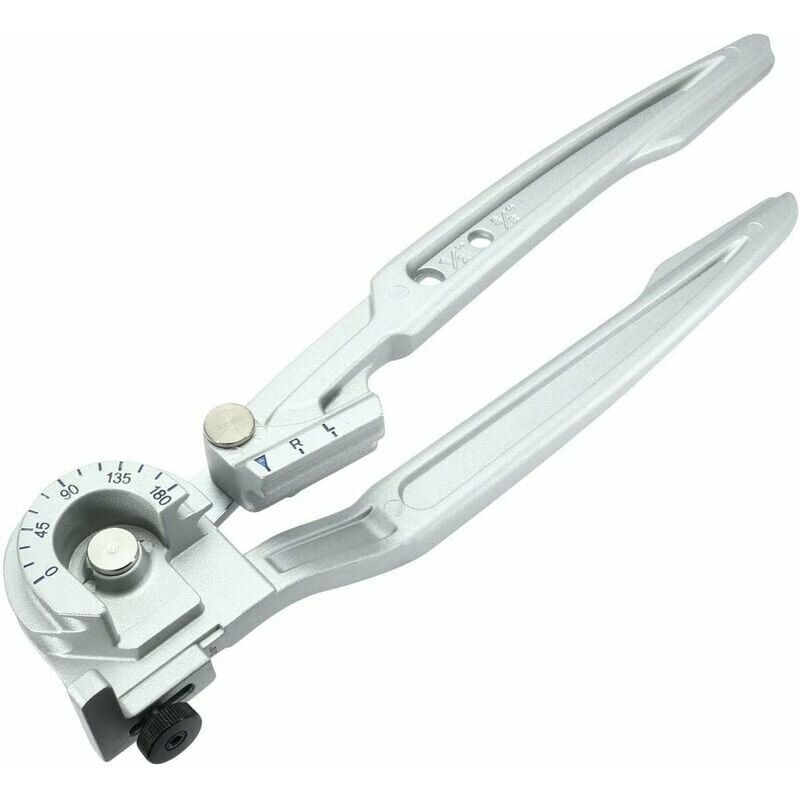 Specifiche: Materiale: lega di alluminio Angolo di piegatura: 0-180 gradi Raggio di curvatura 23 mm per tubo con diametro esterno di 3/8 (10 mm) Raggio di curvatura 35,8 mm per tubo con diametro esterno di 1/2 (12 mm) Lunghezza totale: ca. 430 mm Contenuto della confezione: 1 x curvatubi
