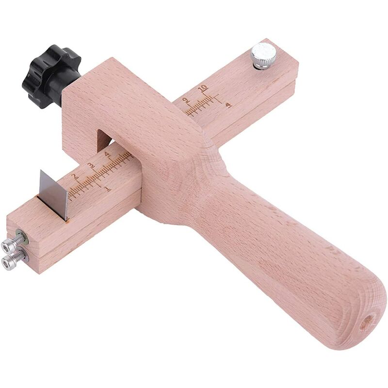 Realizzato in acciaio inossidabile di prima qualità e legno di faggio, premuroso e resistente. Durevole e premuroso, incluse 5 lame di ricambio. Le lame sono facili da sostituire per la pulizia, perfette per tutti i tipi di taglio della fettuccia. Il taglia reggia in legno ha una barra regolabile che ti aiuta a tagliare lo spessore per tutti i tipi di cinture in pelle. Lame di ricambio per la pulizia, perfette per tutti i tipi di tagli di reggia. La taglierina può regolare lo spessore di taglio da 1 a 5 mm. La barra trasversale è contrassegnata in pollici e centimetri, cinghie facili da tagliare fino a 10 cm di larghezza. Facile da usare. Questo strumento è facile da usare. Sarà molto utile quando fai il fai da te in pelle.
