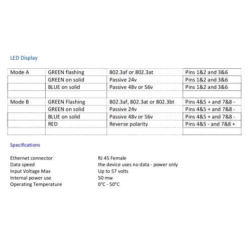 Questo dispositivo rilevatore PoE riporta il tipo di PoE sul cavo Ethernet tramite luci a LED. Con questo dispositivo portachiavi, puoi scoprire rapidamente i metodi PoE disponibili, le tensioni approssimative, la disposizione dei pin e la polarità.