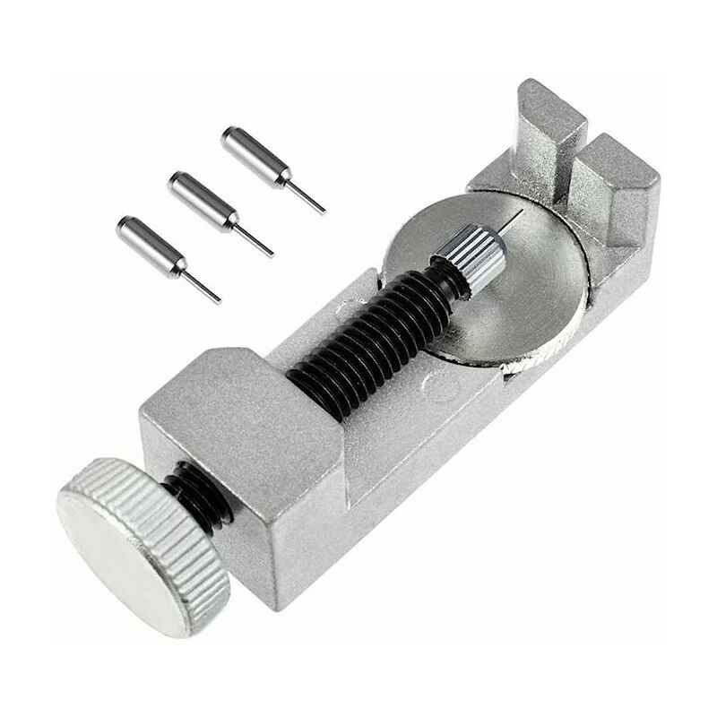 Kit completo di livello professionale: contiene tutto il necessario per rimuovere i perni dal braccialetto e regolarne le dimensioni con facilità! (Tempo di funzionamento: circa 15 minuti) Facile da usare: non è più necessario chiamare un orologiaio per regolare i cinturini dell'orologio. Compatibile con la maggior parte dei cinturini (larghezza massima: 30 mm) . I 3 cacciaspinotti intercambiabili ti permettono di utilizzare questo prodotto su bracciali di diverso spessore. Prodotto di alta qualità, progettato in metallo ultra resistente per una lunga durata.Punzone spilli Regolabile Compatibile con Orologi/Orologi + 3 punzoni di diverse dimensioni Lo strumento perfetto per caricare il cinturino dell'orologio! Non è noioso? Hai appena ricevuto un orologio nuovo di zecca per il tuo compleanno o per Natale e scopri che il cinturino dell'orologio non ti va bene. Non preoccuparti! Con Watch Band Removal Tool, puoi ridimensionare il cinturino a tuo piacimento. Rimuovi o aggiungi