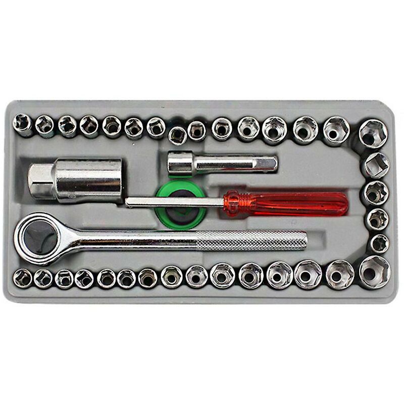 Set di chiavi a bussola per attrezzi per riparazione auto 40 chiavi a mano combinate (40 pezzi con scatola) Caratteristica: acciaio al carbonio, finitura a specchio. Questo prodotto è adatto per auto, casa, riparazioni di macchine, riparazioni auto, riparazioni auto, ecc. È adatto per acceleratore di demolizione per auto, sedia del sedile, serratura della porta, parafango. Adatto per la decorazione di interni di auto. Adatto per motociclette, riparazioni di biciclette. Viti per diverse forme Specifica: Nome: Set di combinazioni di chiavi da 40 pezzi Colore: Grigio Materiale: Plastica + Ferro Peso: Chiudi 1.035 kg Imballaggio: In scatola (nella foto) Dimensioni confezione: 24 x 12 x 4 cm Attrezzi per riparazioni automobilistiche e motociclistiche Strumento per maniche da 40 pezzi (scatola da 40 pezzi inclusa) 28 comprese maniche della serie 1/4: 4, 4,5, 5, 5,5, 6, 6,5, 7, 7.5, 8, 9, 10,11,12,13,5/32,3/16,7/32, 1/4, 9/32, 5/16, 11/32, 3/8, 13/32, 7/16, 15/32, 1/2, 17/32, 9/16.3