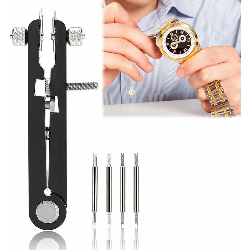 Modifica facilmente il tuo orologio a casa o in viaggio. Pratico cinturino dell'orologio per aiutarti a regolare e riparare facilmente Acciaio inossidabile di precisione progettato per apportare modifiche al cinturino, si blocca con il giro di una vite, puoi bloccare le pinze nella misura specifica che preferisci non c'è bisogno della tua riparazione Non c'è bisogno di andare in un negozio di riparazione di orologi professionale, questo strumento ti consente di riparare il tuo orologio a casa, risparmiare un sacco di soldi e tempo ed esercitare le tue abilità. Per le mollette e ti aiuta a installare cinturini e cinturini per orologi a una cassa dell'orologio nuova (o forse vecchia)Se hai domande, non esitare a contattare il nostro eccellente team di assistenza clienti, risponderà alle tue domande