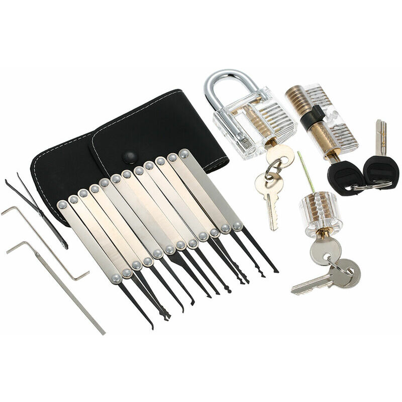 Questo set è molto adatto per i principianti che vogliono migliorare le proprie capacità di scasso e perdere sempre le chiavi. Certo, è un regalo ideale per i bambini interessati alla struttura e alla scienza. Sono inclusi tre tipi di serrature, che consentono di esercitarsi con diversi tipi di serrature. Caratteristiche: Sono inclusi 15 set di plettri con blocco per allenamento, all-in-one ha tutti gli strumenti di cui hai bisogno. Un lucchetto con struttura trasparente ti aiuterà a capire meglio il meccanismo dietro le serrature. I plettri sono realizzati in acciaio inossidabile e la serratura è in acrilico, resistente e robusta per un uso prolungato.Sono inclusi tre tipi di serrature, che consentono di praticare diversi tipi di serrature. Una borsa per il trasporto è inclusa per riporla facilmente. Ideale per principianti e professionisti. Caratteristiche: Materiale: acciaio inossidabile (scelta) e acrilico (lucchetto) Dimensioni confezione: 28 * 20 * 8 cm / 11,0 * 7,9 * 3,1