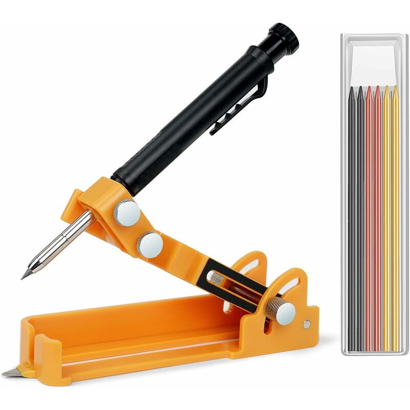 REGOLAZIONE VERSATILE - Lo strumento di tracciamento versatile ti consente di cambiarne facilmente la forma, tutto ciò che devi fare è cambiare la tenuta del portapenne e del dado. È bloccabile e fisso, più preciso e più facile da usare. Con 4 modalità per soddisfare le diverse esigenze di tracciamento (modalità traccia, modalità contorno, modalità bussola, modalità righello) la marcatura multifunzionale è realizzata in materiale metallico più stabile. È più ordinato, più stabile e più facile da tenere in posizione. Il corpo principale è realizzato in ABS di alta qualità, leggero e facile da trasportare, con un design unico con clip da cintura per pantaloni da camicia. La scala chiaramente visibile ne garantisce anche la facilità d'uso.【OLTRE 15 APPLICAZIONI DI MARCATURA】: il nostro kit di marcatura perfetto ha oltre 15 applicazioni di marcatura, come la marcatura di piani di lavoro, l'installazione di battiscopa, pavimenti, piastrelle di laminazione, lavorazione del legno decorativa
