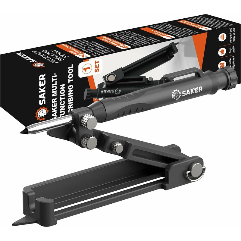Regolazione versatile: puoi cambiarne la forma in base alle tue esigenze, basta cambiare la tenuta del portamatite e del dado per ottenere forme diverse per soddisfare la domanda. Può essere bloccato e fissato dopo ogni regolazione per garantire la precisione. Alta qualità: è realizzato in lega di alluminio di alta qualità, la cui superficie è trattata mediante ossidazione anodica, che può aiutare a prolungare la vita del prodotto. Compatto e facile da usare - Le dimensioni del prodotto sono molto ridotte, anche il peso è molto leggero, puoi metterlo direttamente in tasca. Il design unico della clip per cintura dei pantaloni della camicia lo rende facile da trasportare e riporre. FACILE DA USARE: la scala dello strumento di tracciatura dell'arco della linea di lavorazione del legno è chiaramente visibile. Puoi disegnare linee e archi paralleli in base alle tue idee, il che è molto comodo da usare. Ampia applicazione: è uno strumento multifunzionale con più di 15 applicazioni di