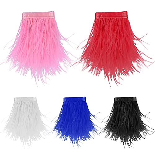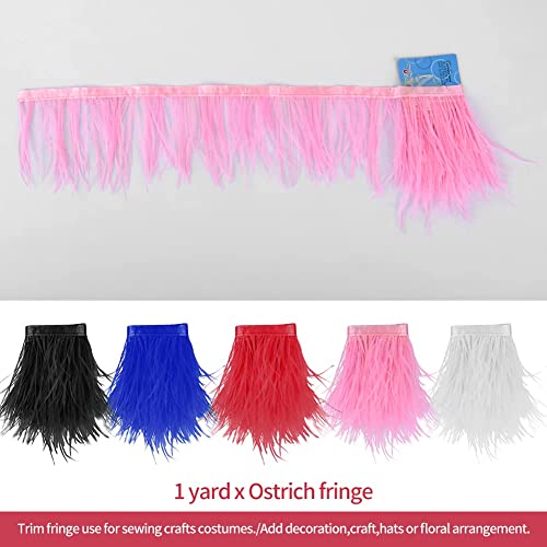 Struzzo piume di frange con nastro di raso nastro per abiti, cucito, artigianato, costumi, decorazione 1 m bianco