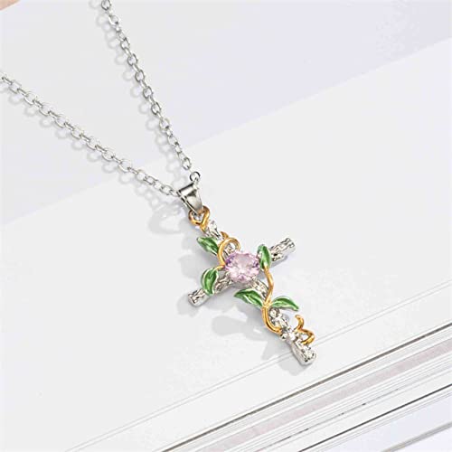 Sttiafay Collana con ciondolo a forma di croce con ciondolo a forma di foglia avvolgente, in oro e argento, lunga collana per donne e ragazzi (oro argento)