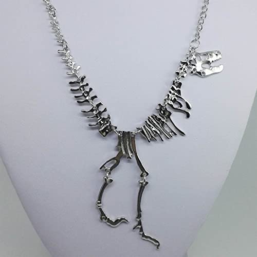 Sttiafay Collana con dinosauro in argento Collana con pendente a forma di scheletro T-Rex esagerato Collana a Y a catena lunga per donna e adolescenti