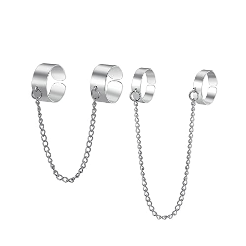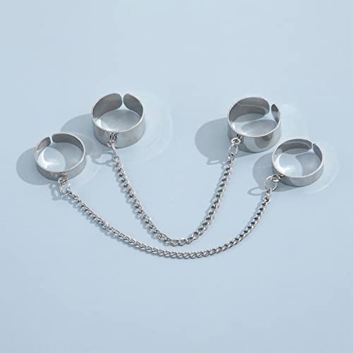 Sttiafay 2 pezzi Anelli con catena punk Anelli aperti regolabili Anelli con catena in argento Anelli con dichiarazione impilabile Gioielli per donne e uomini