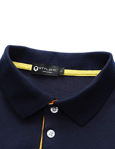STTLZMC Casual Polo Uomo Manica Lunga Tennis T-Shirt Gentiluomo Ricamo Tops S-XXL,Blu,Medium