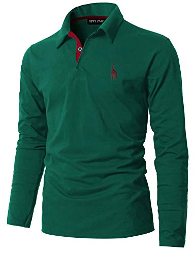 STTLZMC Casual Polo Uomo Manica Lunga Tennis T-Shirt Gentiluomo Ricamo Tops S-XXL,Verde,Large