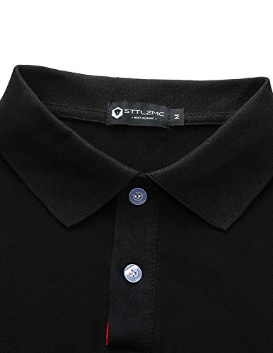 STTLZMC Casual Polo Uomo Manica Lunga Tennis T-Shirt Gentiluomo Ricamo Tops S-XXL,Nero,Medium